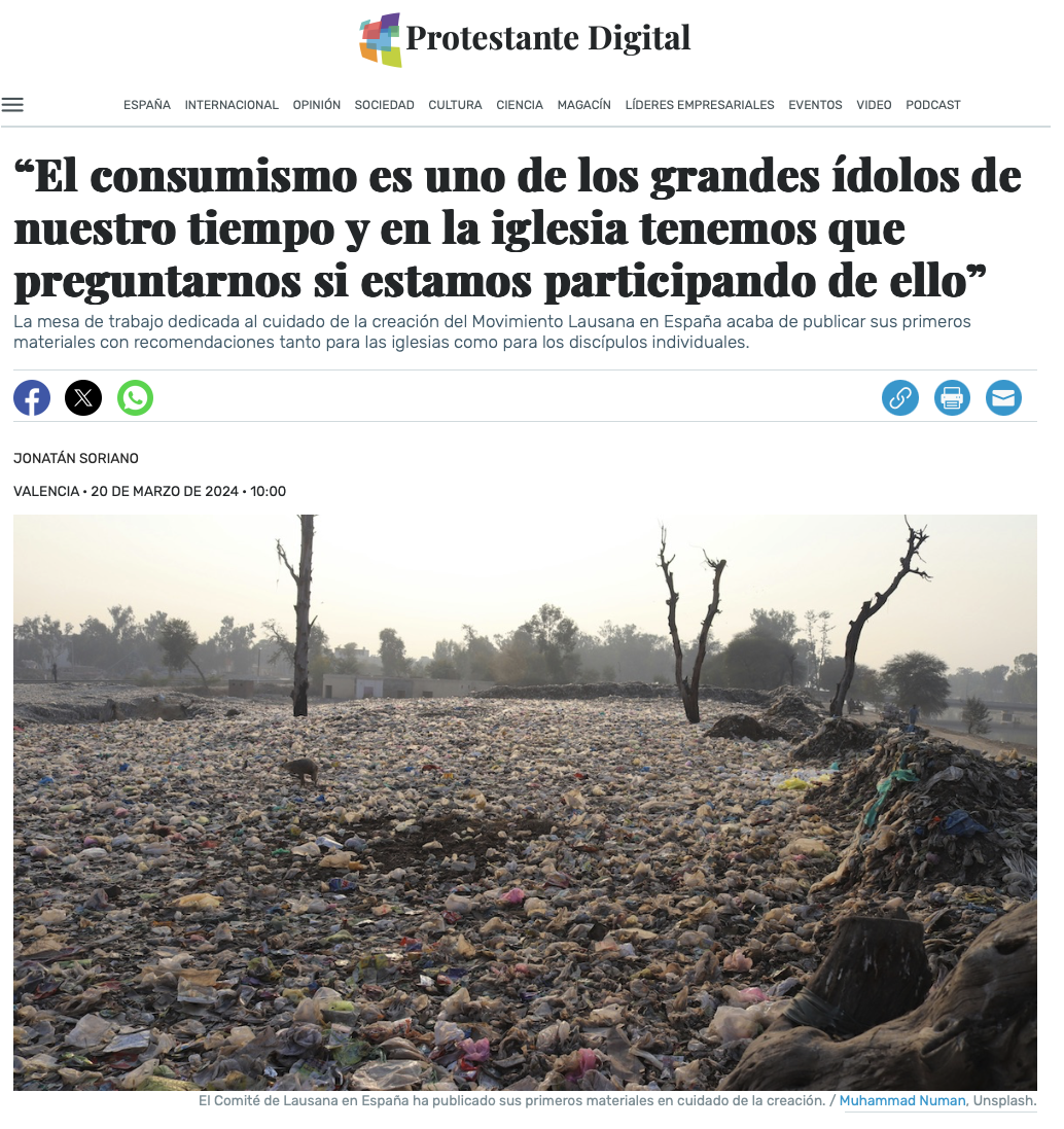 El Movimiento de Lausana España ha sumado a sus mesas de trabajo una nueva sobre el “cuidado de la creación” debido a la relevancia cada vez más urgente de esta área. Dicho grupo está compuesto por seguidores de Jesús de toda España que comparten un llamado y sensibilidad especial hacia esta rama de la misión integral de Dios que está reconciliando todas las cosas con Él a través de Cristo.